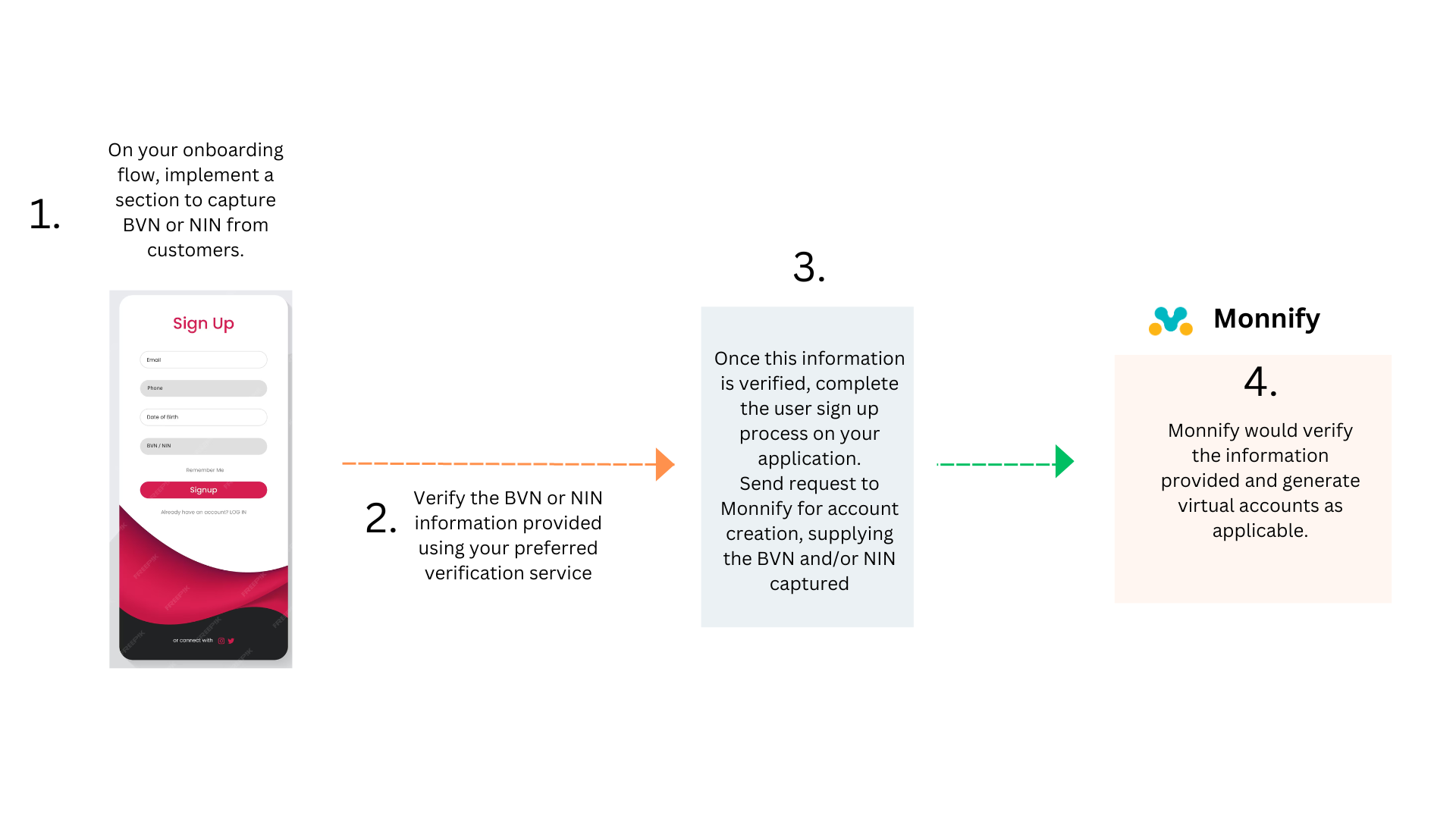 Monnify would verify the information provided and generate virtual accounts as applicable