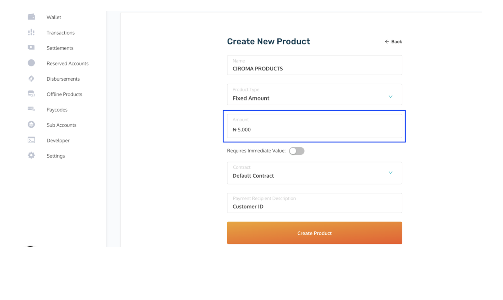 For fixed product types, the amount must be stated by merchants on the Monnify platform.